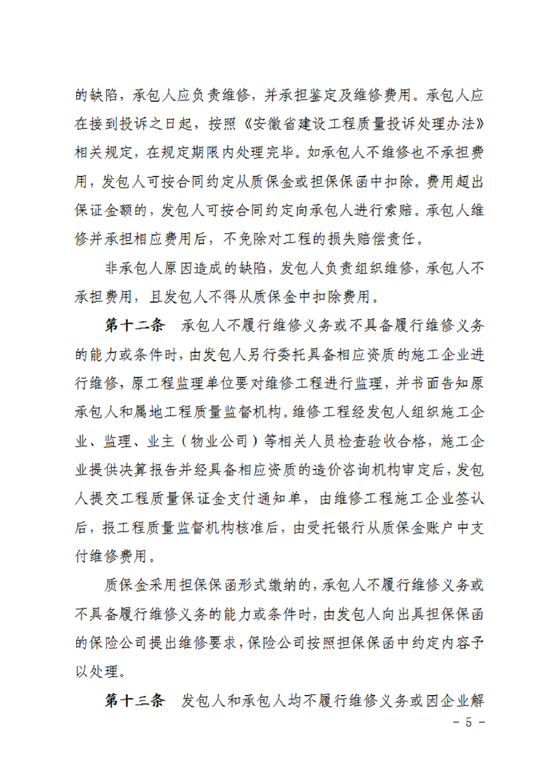 關(guān)于修訂《六安市建設(shè)工程質(zhì)量保證金管理實(shí)施細(xì)則》的通知